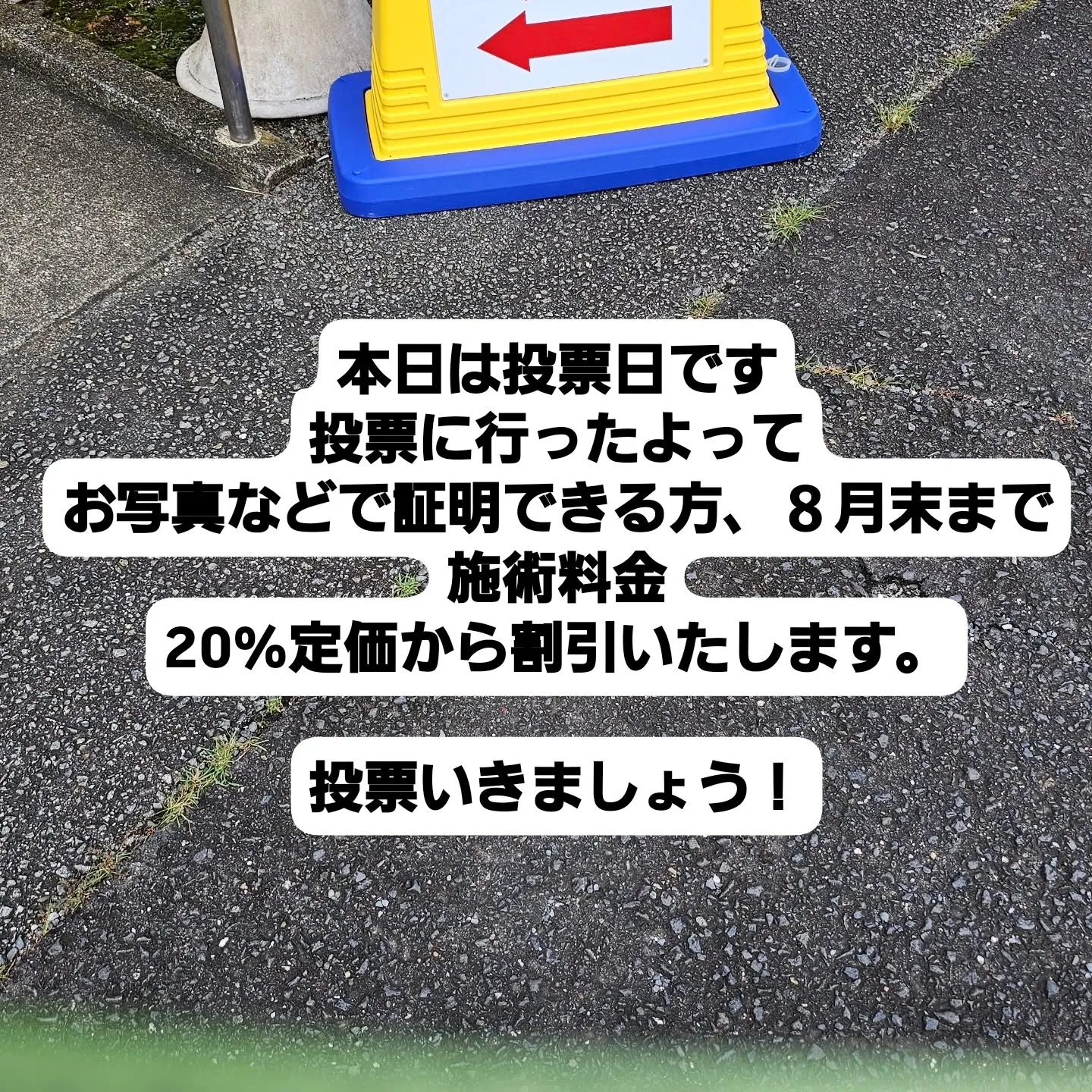 絶対に今回の選挙は行きましょう。 選挙に行ったことが証明できる方 8月末まで施術料金20%OFFいたします。